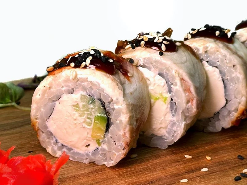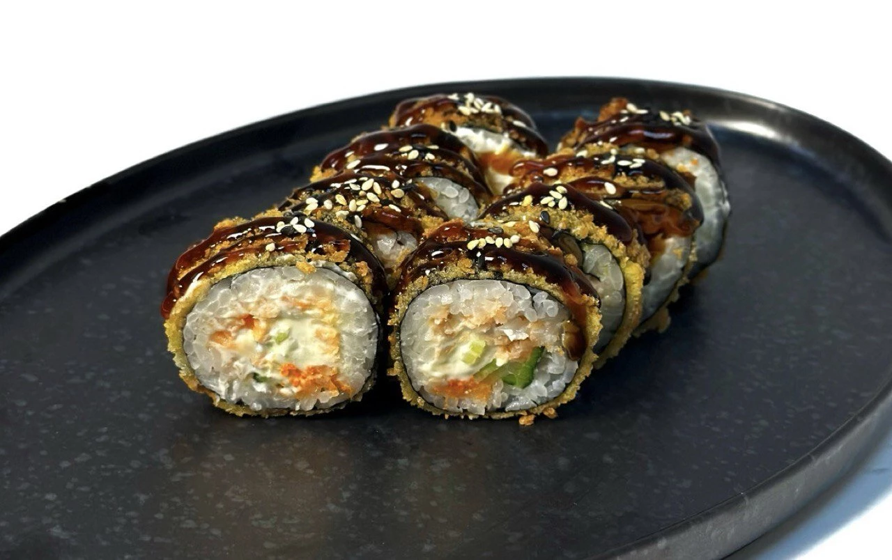 Ролл с угрем, крабом и темпурными чипсами